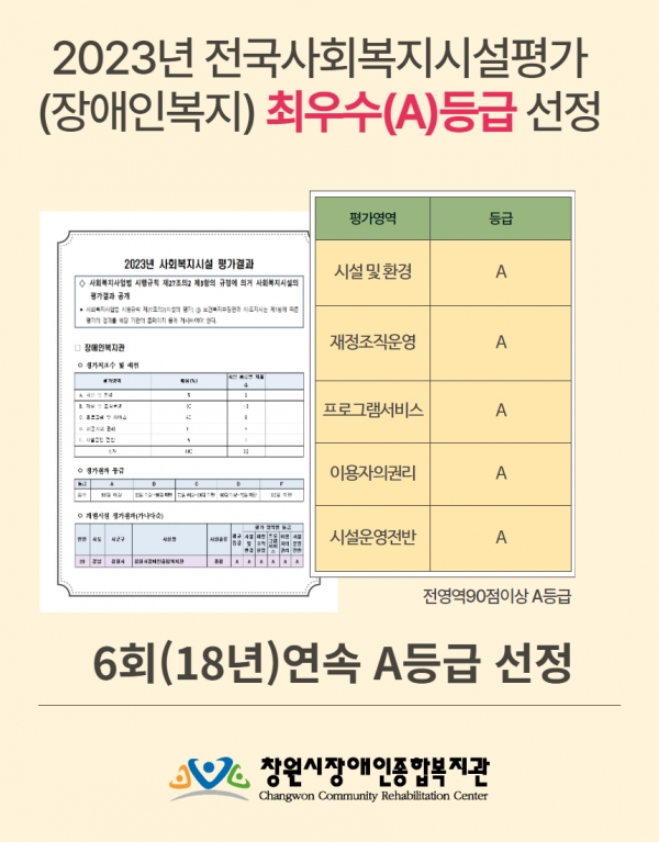창원장복은 전 영역에 90점 이상 “A”등급을 받아 지역 내의 장애인복지 서비스 기관으로서