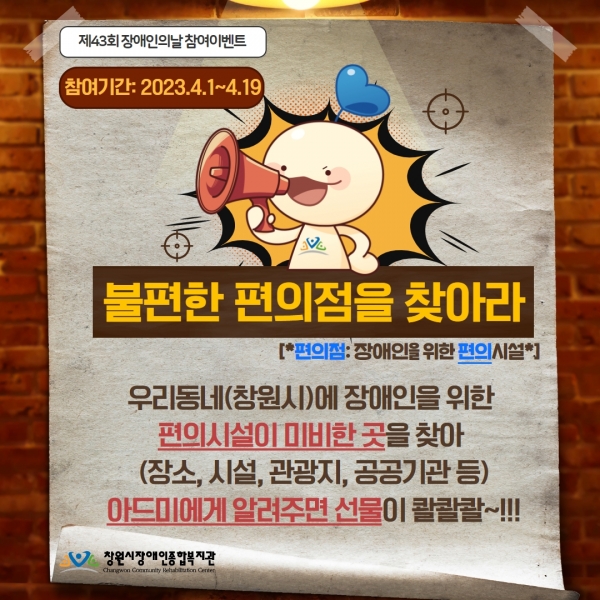 공지사항 제43회 장애인의날 참여이벤트 "불편한 편의(시설)점"을 찾아라