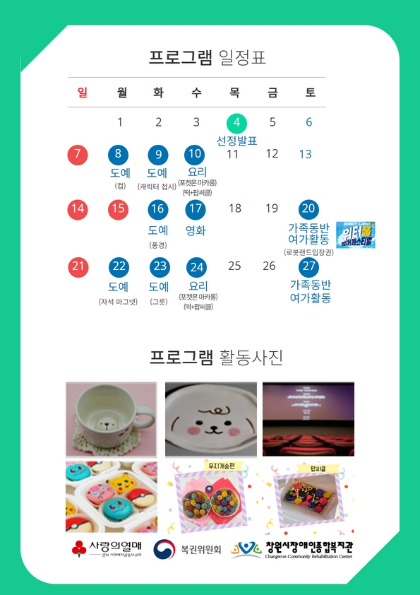 또래 소모임 및 체험활동, 가족동반여가활동지원 ※ 프로그램 일정표 참조