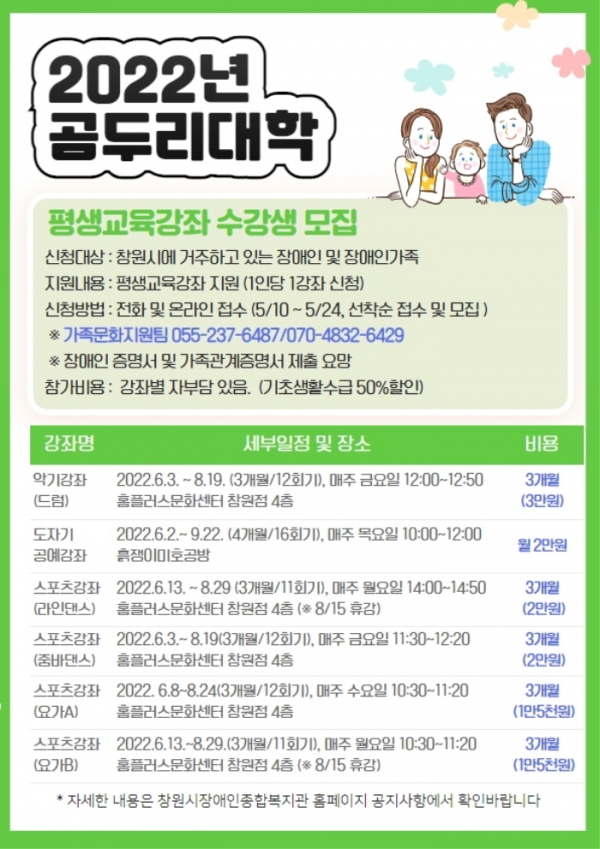 장애인과 장애인 가족을 위한 「2022년 곰두리대학」 수강생을 모집합니다.