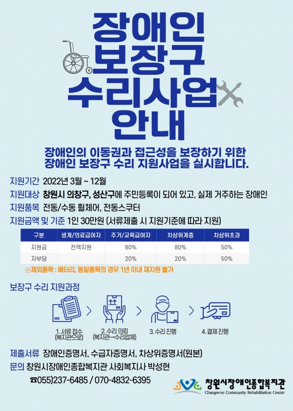 2022년 장애인 보장구 수리사업에 대하여 안내드립니다.