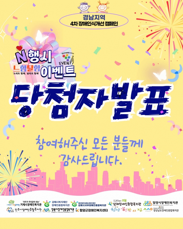 4차 장애인식개선 캠페인 "느함달함 N행시 이벤트" 당첨자 안내