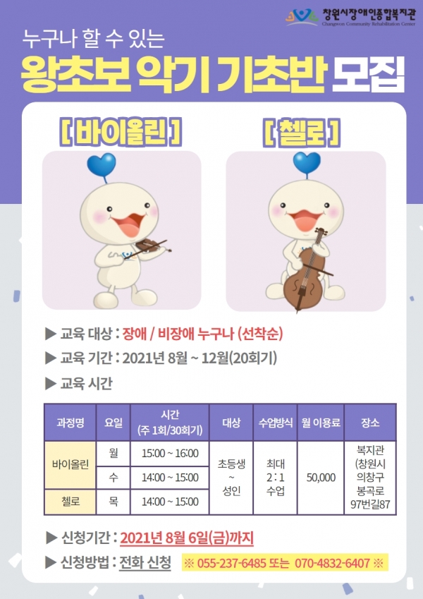 공지사항 [마감] 악기 기초반 하반기 추가모집 안내
