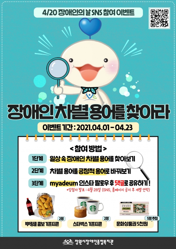 창원시장애인종합복지관에서 제 41회 장애인의 날(4/20)을 맞아 이벤트를 진행하고 있습니다.