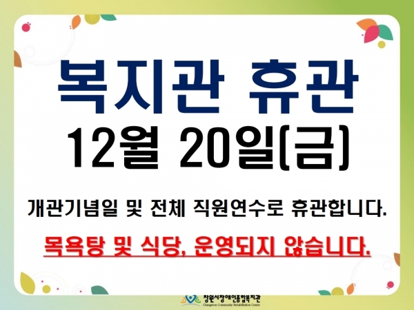 공지사항 12월 20일 (금) 복지관 휴관 안내 페이지 정보 작성자 운영자 댓글 0건 조회 8,447회 작성일 19-12-18 13:52 본문 12월 20일 직원 연수로 휴관입니다.복지관 방문에 차질 없길 바랍니다. 이전글2020년 식자재 납품업체 선정 입찰 공고 19.12.24 다음글2019년 제 2차 이용자모니터 위원 회의 결과 공지 19.12.18 목록 댓글목록 댓글목록 등록된 댓글이 없습니다.