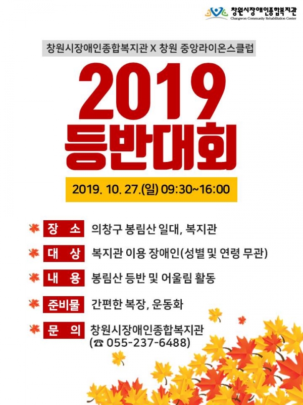 창원시장애인종합복지관과 창원 중앙라이온스클럽이 함께하는 "2019 등반대회"의 참가자를 모집합니다!