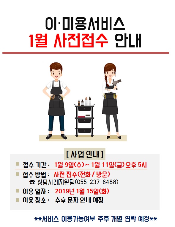 공지사항 2019년 이미용서비스 1월 이용 및 접수 안내
