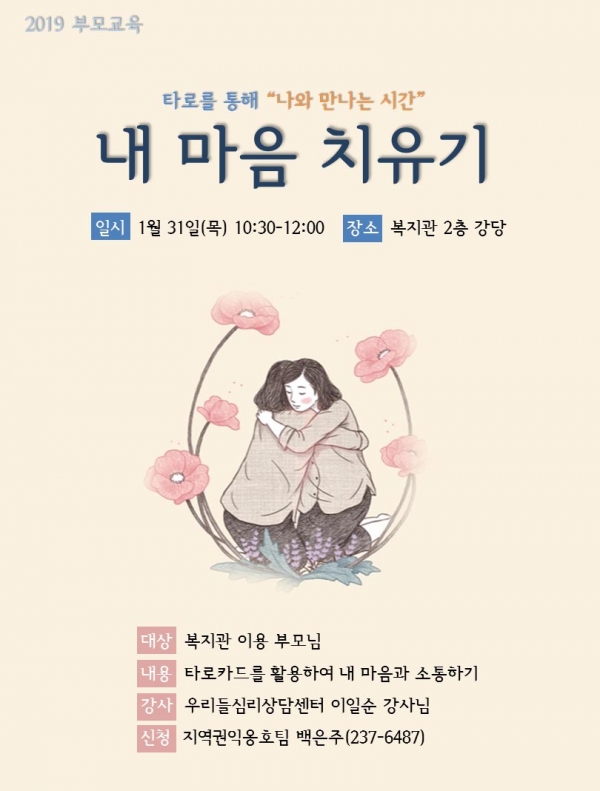 복지관 이용부모님 누구나 수강가능하며 사전 신청 부탁드립니다.
