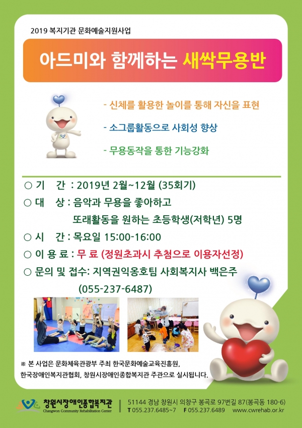 공지사항 2019 복지기관 문화예술지원사업 "새싹무용반" 이용자 모집