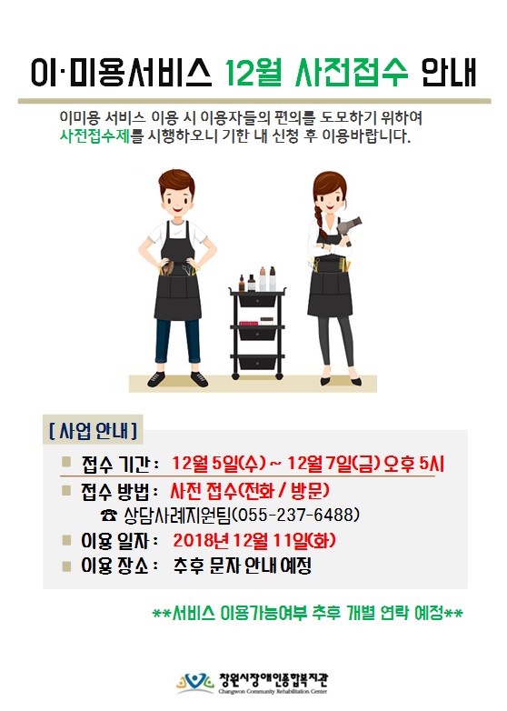 공지사항 2018년 이미용서비스 12월 사전접수 안내
