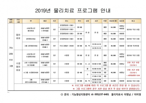 공지사항 2019년 물리치료 프로그램 안내 페이지 정보 작성자 운영자 댓글 0건 조회 7,032회 작성일 18-12-06 10:35 본문 이전글2019년 언어재활/심리치료/작업치료 프로그램 안내 18.12.06 다음글2018년 이미용서비스 12월 사전접수 안내 18.12.04 목록 댓글목록 댓글목록 등록된 댓글이 없습니다.