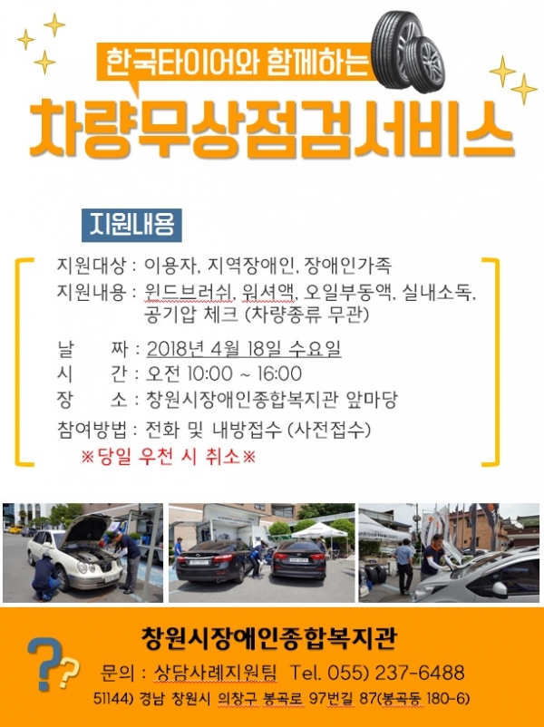 우리 복지관에서는 한국타이어와 함께하는 차량 무상점검서비스를 실시하고자 합니다!