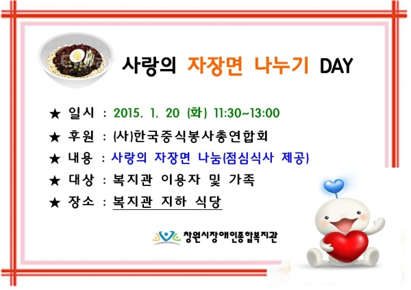 1월 20일 자장면 나누기 DAY입니다. 많이들 오셔요~~^^