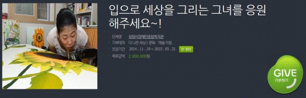 공지사항 [네이버 해피빈 모금안내]입으로 세상을 그리는 그녀를 응원해주세요~!