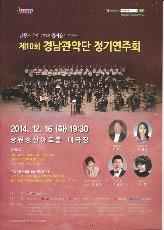 감동과 추억, 그리고 즐거움이 함께하는 제10회 경남관악단 정기연주회 안내드립니다.