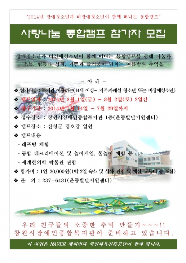 공지사항 사랑나눔 통합캠프 참가자 모집 페이지 정보 작성자 안병용 댓글 0건 조회 12,114회 작성일 14-07-22 09:22 본문 사랑나눔 통합캠프 참가자 모집 이전글2014년 청소년(중고) 자원봉사학습 체험 참가자 모집 14.07.23 다음글직원채용 계약직(체육교사, 사회복지사) 모집공고 14.07.21 목록 댓글목록 댓글목록 등록된 댓글이 없습니다.