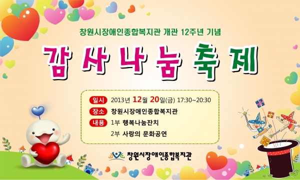 공지사항 개관 12주년 기념 감사나눔축제 페이지 정보 작성자 안병용 댓글 0건 조회 11,170회 작성일 13-12-11 11:42 본문 복지관 개관 12주년 기념!!감사나눔축제에 여러분을 초대합니다. 이전글관용차량 매각 입찰 결과 공고 13.12.13 다음글2014년 동계 사회복지 전문인력 양성 실습생 모집 13.12.11 목록 댓글목록 댓글목록 등록된 댓글이 없습니다.