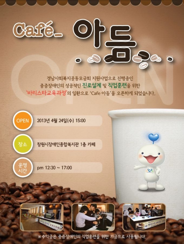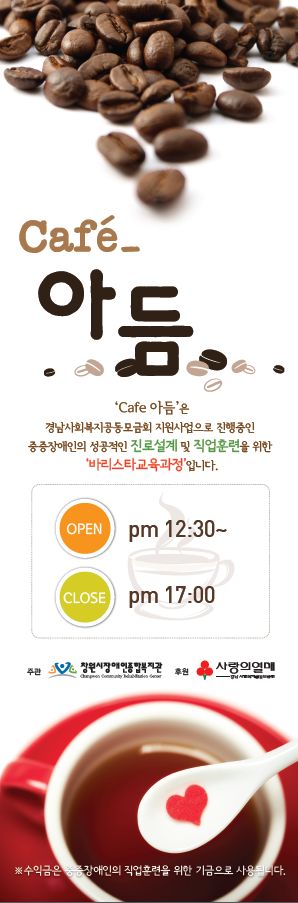 ‘바리스타교육과정’의 일환으로 ‘Cafe 아듬’을 오픈하게 되었어요.