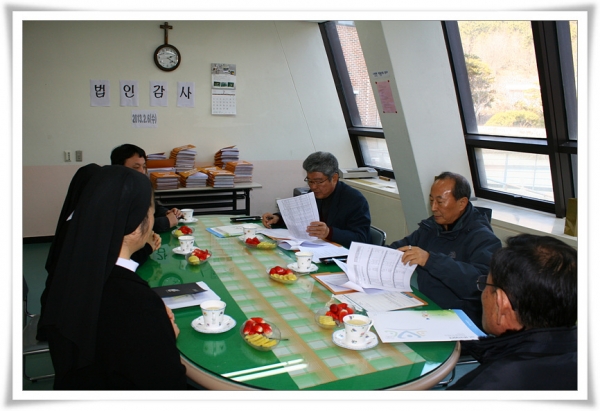 <?xml:namespace prefix = v ns = "urn:schemas-microsoft-com:vml" /><?xml:namespace prefix = w ns = "urn:schemas-microsoft-com:office:word" />2월 6일(수), 복지관 운영주체인 『사회복지법인 범숙』의 사무회계감사를 실시하였습니다. 법인 감사위원인 천주교마산교구 최용진 신부님과 김순곤 신부님, 그리고 법인 조대제 사무국장님께서 수고해 주셨습니다.