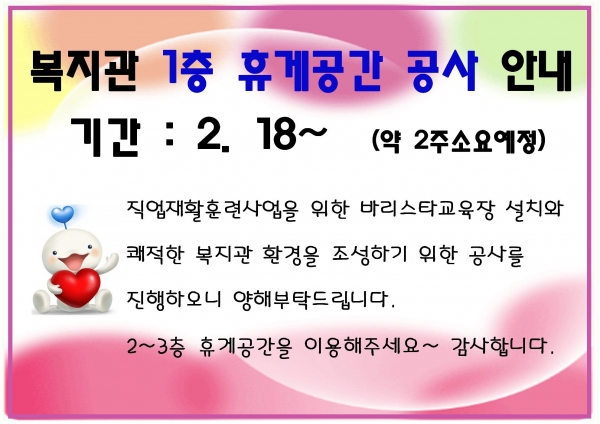 공지사항 복지관 1층 휴게공간 공사 안내