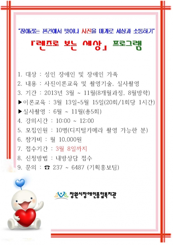 『렌즈로 보는 세상』프로그램 참가자 모집 안내