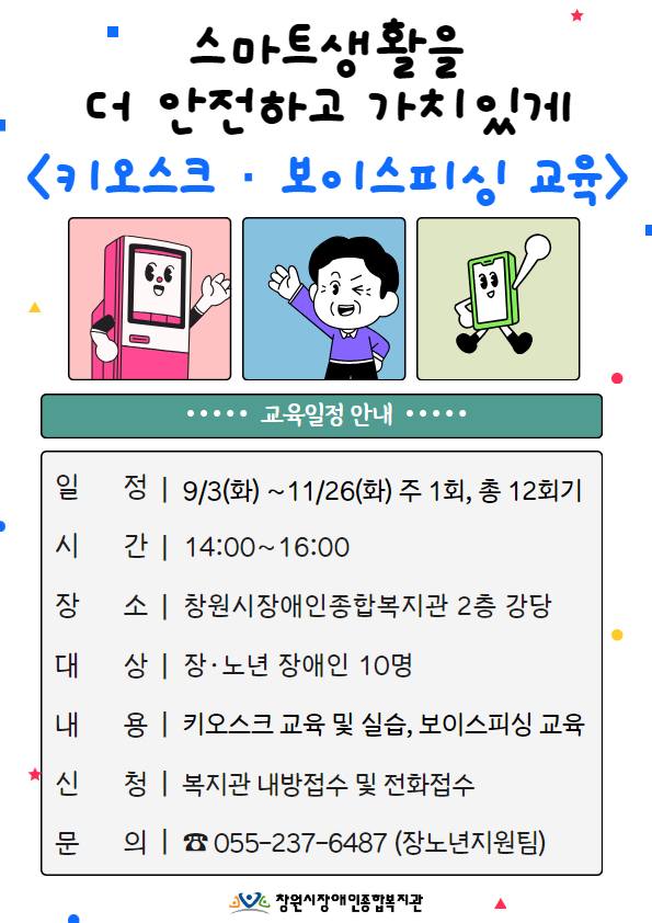 만 40세 이상 장·노년 장애인들을 위한 키오스크& 보이스피싱교육을 실시합니다.