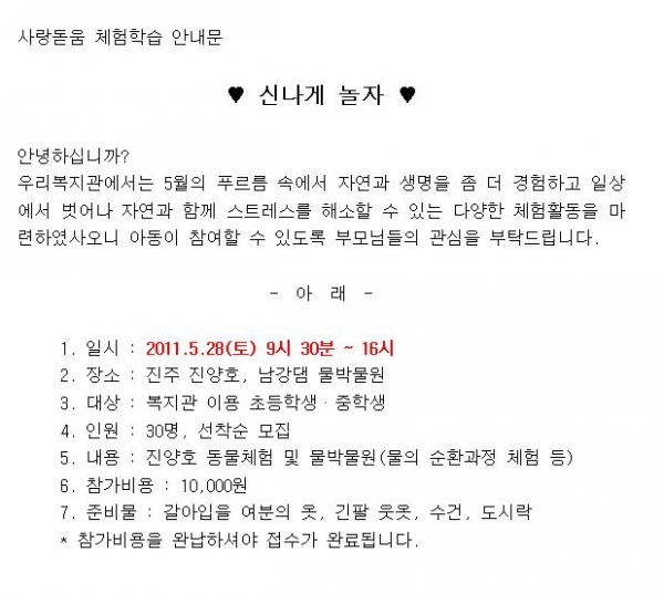 공지사항 사랑돋움 체험학습 안내 페이지 정보 작성자 안병용 댓글 0건 조회 10,667회 작성일 11-05-06 13:50 본문 . 이전글5월 주말체험 프로그램 안내 11.05.20 다음글2011년 장애인보장구수리사업 안내 11.05.04 목록 댓글목록 댓글목록 등록된 댓글이 없습니다.