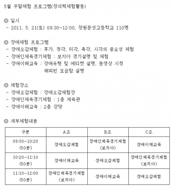 공지사항 5월 주말체험 프로그램 안내 페이지 정보 작성자 안병용 댓글 0건 조회 10,200회 작성일 11-05-20 11:22 본문 . 이전글바우처(장애아동재활치료, 문제행동아동조기개입)감각통합치료 실시 안내 11.05.20 다음글사랑돋움 체험학습 안내 11.05.06 목록 댓글목록 댓글목록 등록된 댓글이 없습니다.