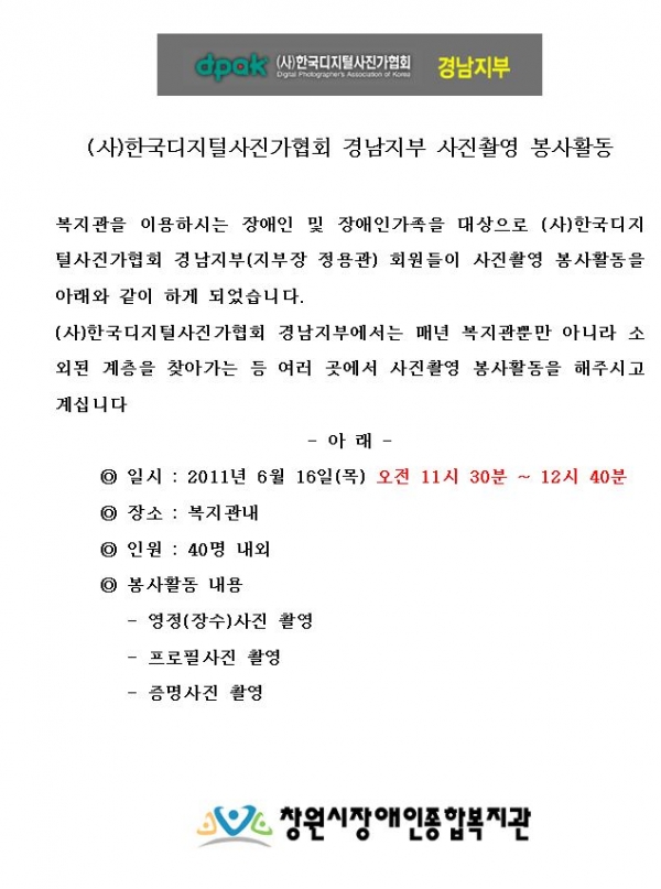 공지사항 한국디지털사진가협회 사진촬영 봉사활동 안내 페이지 정보 작성자 안병용 댓글 0건 조회 10,120회 작성일 11-06-13 17:25 본문 . 이전글2011년 치아의 날 구강보건 행사 안내 11.06.13 다음글제6회 경남지역장애인복지관 종사자 체육대회 종합우승 11.06.13 목록 댓글목록 댓글목록 등록된 댓글이 없습니다.