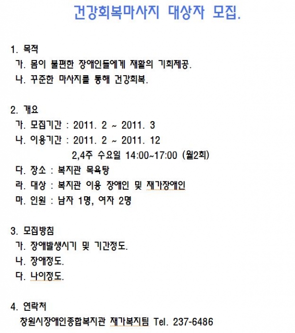 공지사항 건강회복마사지 대상자 모집 페이지 정보 작성자 안병용 댓글 0건 조회 10,356회 작성일 11-02-09 09:45 본문 . 이전글재가장애인 안경지원 사업 홍보 11.02.09 다음글수지침 서비스 이용자 모집 11.02.09 목록 댓글목록 댓글목록 등록된 댓글이 없습니다.