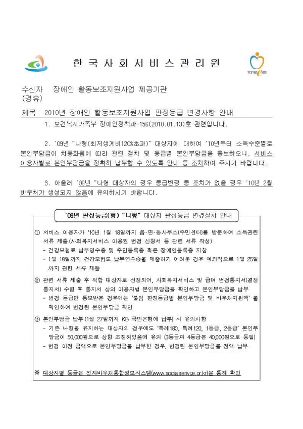 공지사항 2010 장애인활동보조 지원사업 판정등급 변경 안내 페이지 정보 작성자 운영자 댓글 0건 조회 12,592회 작성일 10-01-15 11:26 본문 한국서비스관리원 안내 공문입니다. 이전글창원시자원봉사센터, 겨울방학 청소년 자원봉사 교육 및 체험활동 실시 10.01.15 다음글2010 복지관 운영계획입니다. 10.01.15 목록 댓글목록 댓글목록 등록된 댓글이 없습니다.