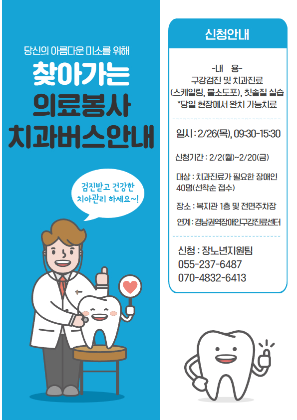 공지사항 [모집] 찾아가는 의료봉사 치과버스 신청 안내