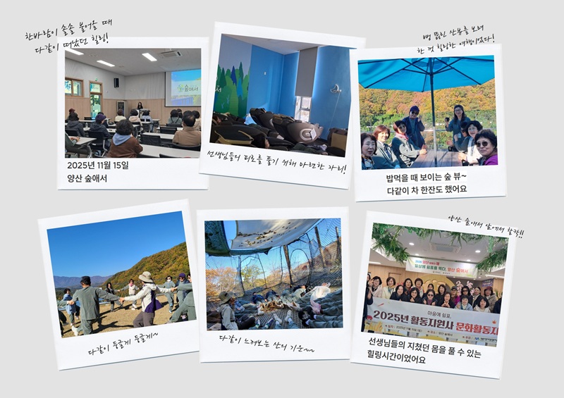 활동지원사 선생님들에게 힐링의 시간을 마련하기 위해 경상남도 양산에 있는 '숲애서'를 다녀왔습니다.