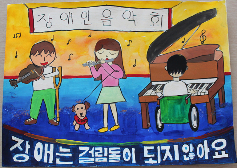 지난 4월 20일 제34회 장애인의날 맞이하여 진행되었던 초등학생 그림공모전 당선작이 발표되었습니다.아이들의 착한 생각과 마음을 볼 수 있어서 참 다행이다라는 느낌이네요. 축하합니다.
