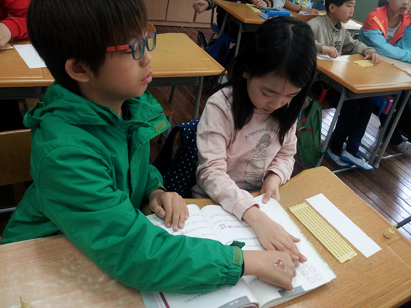 장애이해교육, 휠체어체험, 시각장애체험, 점자체험 등으로 진행되고 있으며, 짧은 시간이지만 관심을 가지고 집중하는 학생들을 보면 큰 보람을 느낍니다.