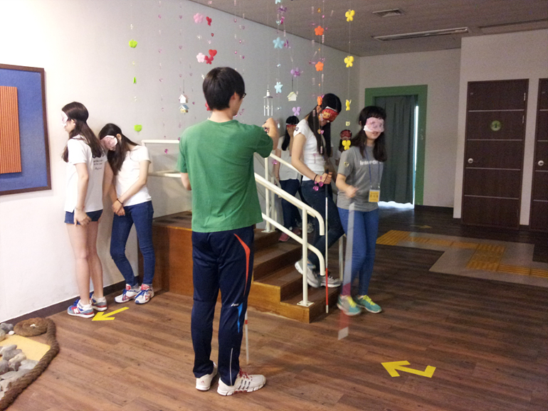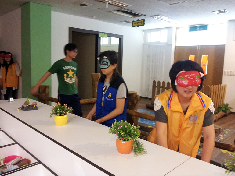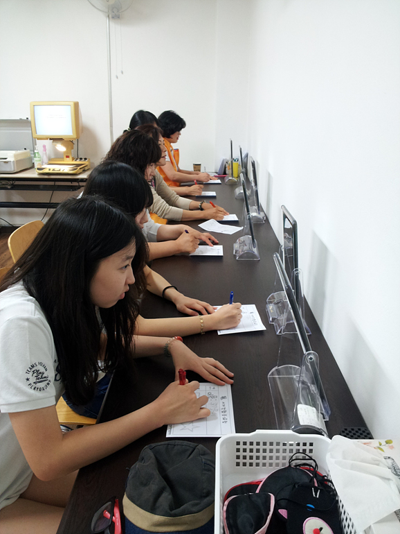 학생들과 어머니들로 구성된 반림중 샤프론 봉사단은 작년에 이어 올해도 방문해 주셨는데요, 학교 개교기념일에 맞추어 오전 일찍 복지관에 와서 장애오감체험과 점자체험을 하고 갔습니다.