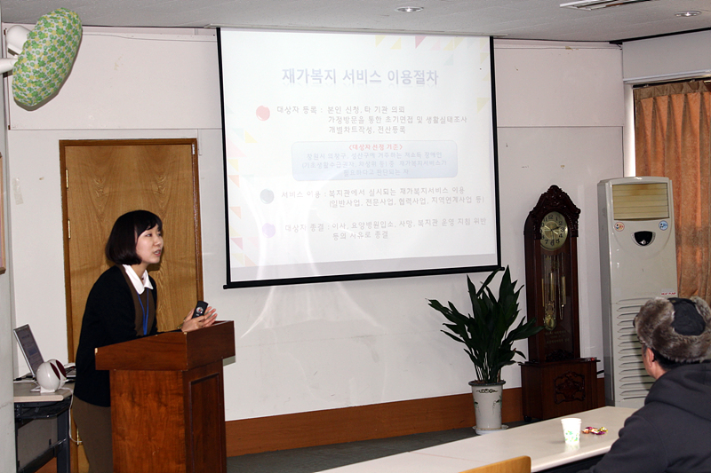 2014년 변경된 재가복지 사업 안내 및 간담회로 실시되었으며, 참석해주신 이용자분들의 소중한 의견을 수렴하여 앞으로 이용자 욕구 반영을 통한 서비스 제공과 재가복지서비스의 효율성 및 질적 향상을 위하여 더욱 노력하겠습니다.