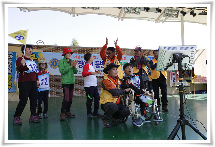 이번 등반대회는 라이온스 클럽 회원 100여 명과 장애인 60여 명이 참가해 회원들에게는 사회봉사 실천을, 장애인들에게는 도전과 용기를 갖는 시간이 됐답니다.