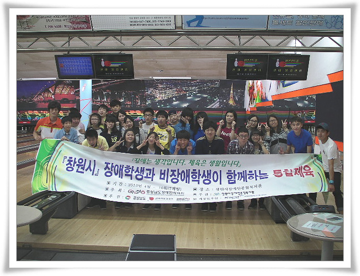 [2013.10.5. 통합체육 볼링장 체험학습] 아드미에요~~^^ 2013년 창원시 장애학생과 비장애학생이 함께하는 통합체육 프로그램에 참여하는 학생들이 이번에는 볼링장 체험학습을 하였다고 합니다.10월 5일(토) 14:00~17:00, 창원 현대볼링장에서 통합체육프로그램시간에 배운 볼링 활동을 직접 볼링장에서 체험함으로서 새로운 신체활...