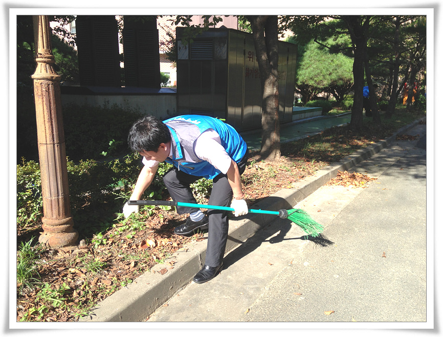 가을맞이 복지관 외곽청소를 2013.9.16.(월) 아침, 직원들 모두가 한마음되어 복지관을 사랑하는 마음으로 잡초를 뜯고, 낙엽을 쓸어 모으고...
