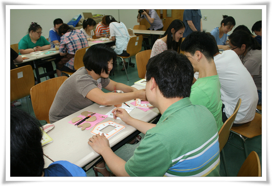 이들은 이날 복지관 소속 장애인들과 함께 아담한 액자세트(톨패인팅)를 직접 제작해 장애인복지관에 전달했다.
