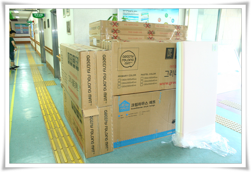 네이버 해피빈 크림하우스 매트 사랑 나눔함을 통해 스노우파레트매트 4개와 칼라폴더매트 15개 390만원 상당의 물품을 복지관에 나눠 주셨습니다.