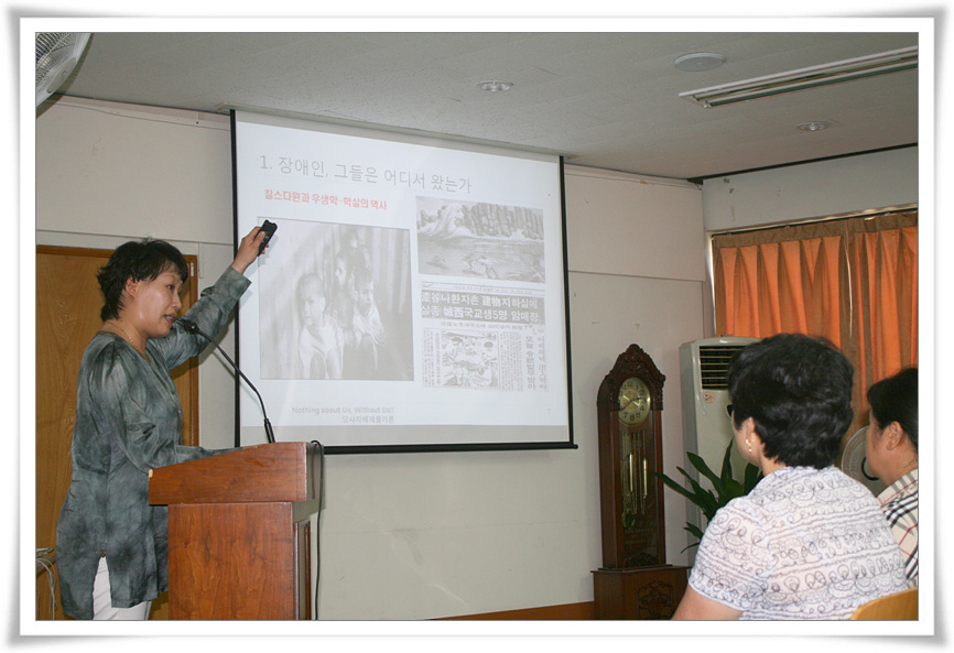 2013.07.13.(토),16.(화) 중 편한 시간대를 선택 할 수 있게 하여 두 차례에 걸쳐 실시된 이번 교육은 장애인 인권과 장애인차별금지법에 관한 내용으로 무심결에 행동하고 말하는 우리 모습들을 돌아보게 하는 좋은 기회가 되었습니다.