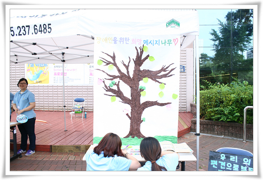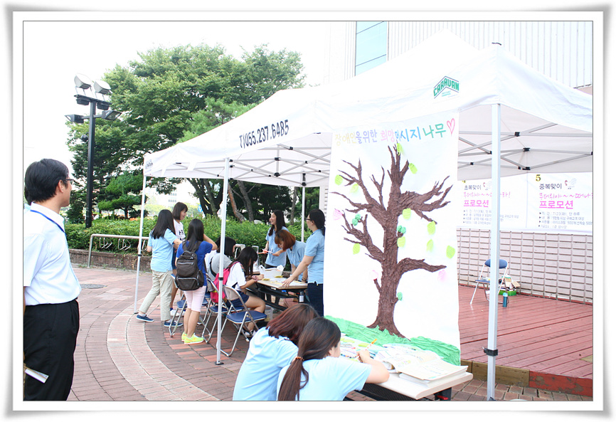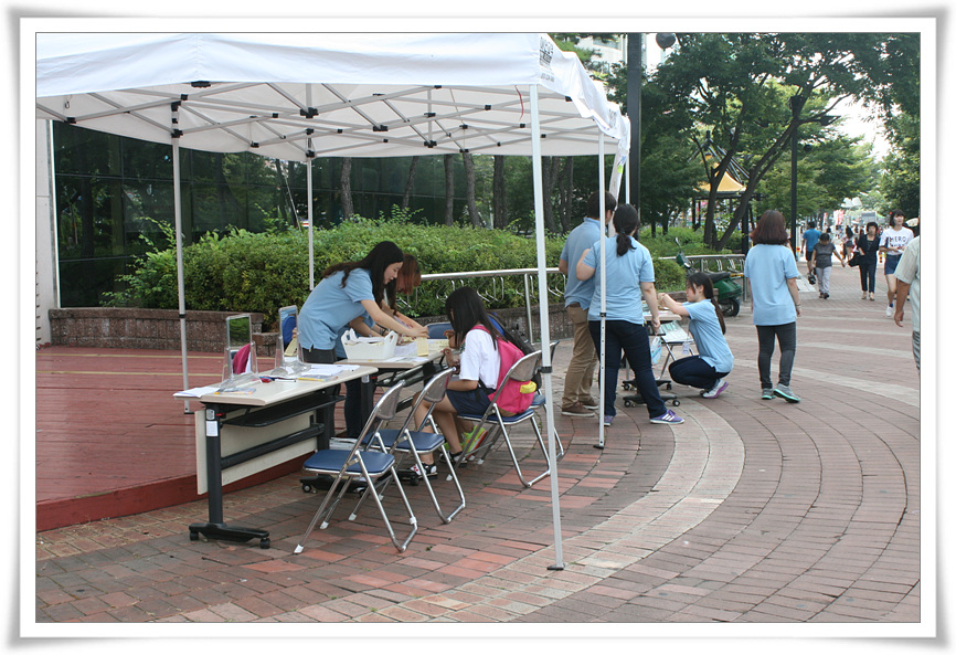무척 더운 날이었는데요. 흐르는 땀이 엄청났지만 예비사회복지사 실습생들에겐 더위따위는 아무것도 아닐 정도로 열심히 홍보하고 체험을 진행하였어요.