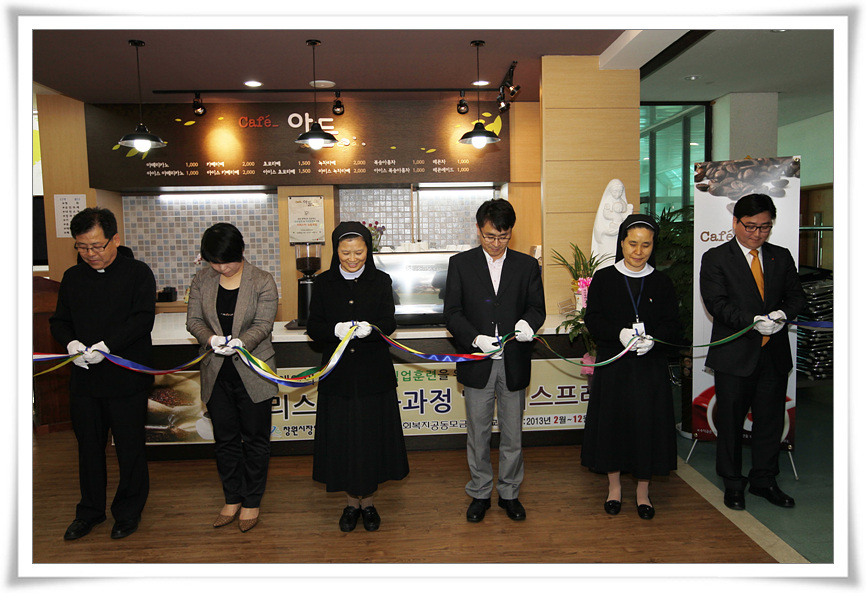 [2013.4.24. Cafe 아듬 오픈]아드미에요~~~^^ <?xml:namespace prefix = o ns = "urn:schemas-microsoft-com:office:office" />드디어 경남사회복지공동모금회 지원사업으로 진행중인 중증장애인의 성공적인 진로설계 및 직업훈련을 위한 ‘바리스타교육과정’의 일환으로 ‘Cafe 아듬’...