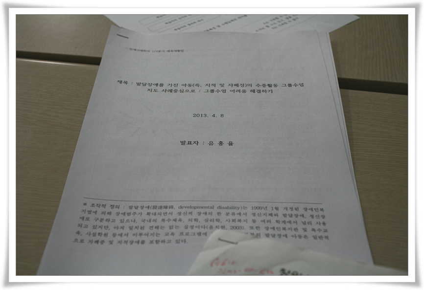 1분기 전체 사례회의가 “발달장애를 가진 아동의 수중활동 그룹수업 지로 사례중심으로: 그룹수업 어려움 해결하기”라는 주제로 체육재활팀 유홍율팀장이 발표를 하였고, 참가한 직원들과 학습자 행동특성 이해중심과 수행능력 차이중심으로 나눠 열띤 논의를 진행하였습니다.