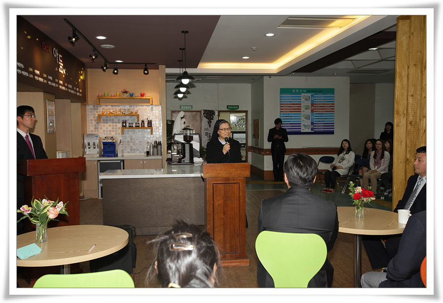 오픈식 이후 ‘Cafe 아듬’의 운영시간은 12시 30분부터 오후 5시까지입니다. 교육생들은 매주 수요일과 금요일 교육이 계속 진행되면서 열심히 바리스타교육을 받고 있습니다. 지금은 라떼만들기 교육을 받고 있습니다.