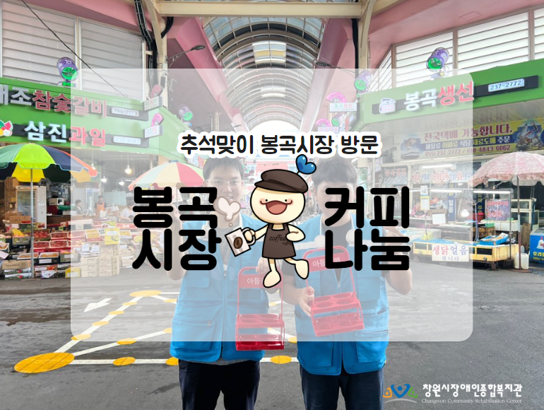 추석명절을 맞아 창원시장애인종합복지관에서는 지역 사회와의 소통을 위해 봉곡시장과 마이이웃 후원업체에 다녀왔습니다 :) 감사한 마이이웃 업체와 봉곡시장의 상인분들께 마음을 담아 아듬카페에서 준비한 시원한 아메리카노와 레몬티 50잔을 나누어 드렸답니다!"덥고 습한 날씨에 시원한 음료를 준비해주셔서 오히려 너무 힘이 되고 감사하다"며 앞으로도 나눔과 장애인복지 ...