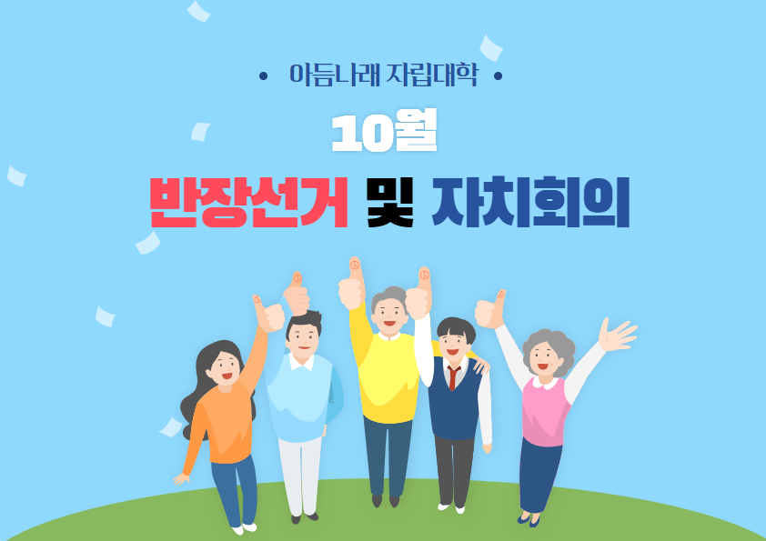 길었던 여름이 지나고 부쩍 선선해진 날씨로 10월을 맞이하게 되었습니다.아듬나래 자립대학 이용자분들은 매달 반장선거와 자치회의를 진행하고 있는데요,반장선거 후보자들이 10월 한달 간 아듬나래 자립대학 친구들과 함께 어떻게 지내고 싶은지, 반장으로서 어떤 역할을 할 지 포부를 밝히고 있습니다!진지하게 반장선거에 임하며 투표를 하고 있는 우리 아듬나래 자립대...