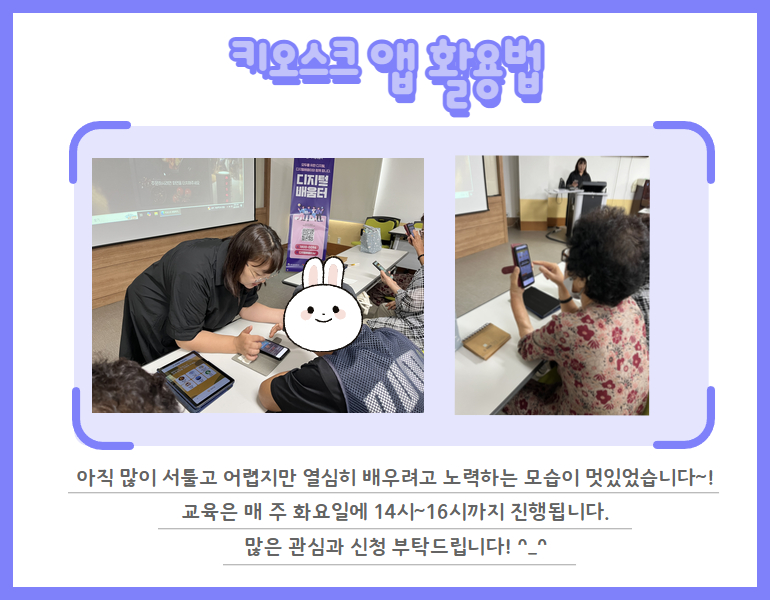 키오스크와 보이스피싱, 스마트폰 교육에 관심 있으신 분들은 많은 신청 부탁드립니다!!
